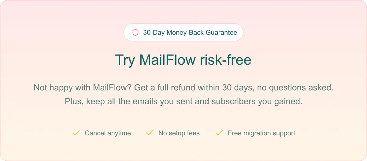 Purchase any MailFlow plan and try it risk-free for 30 days. If you're not completely satisfied, contact us for a full refund—no questions asked. It's that simple.